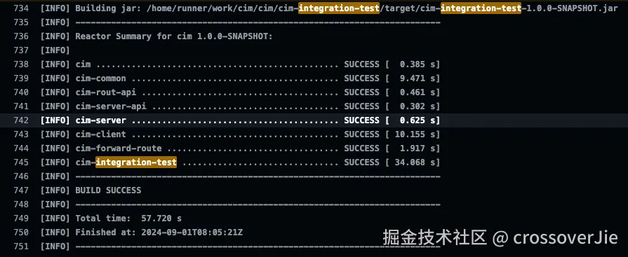 所以在结合了这些优秀项目的经验后我也为 cim 项目新增相关的模块 cim-integration-test,同时也在 github 上配置了相关的 action,最终的效果如下:
