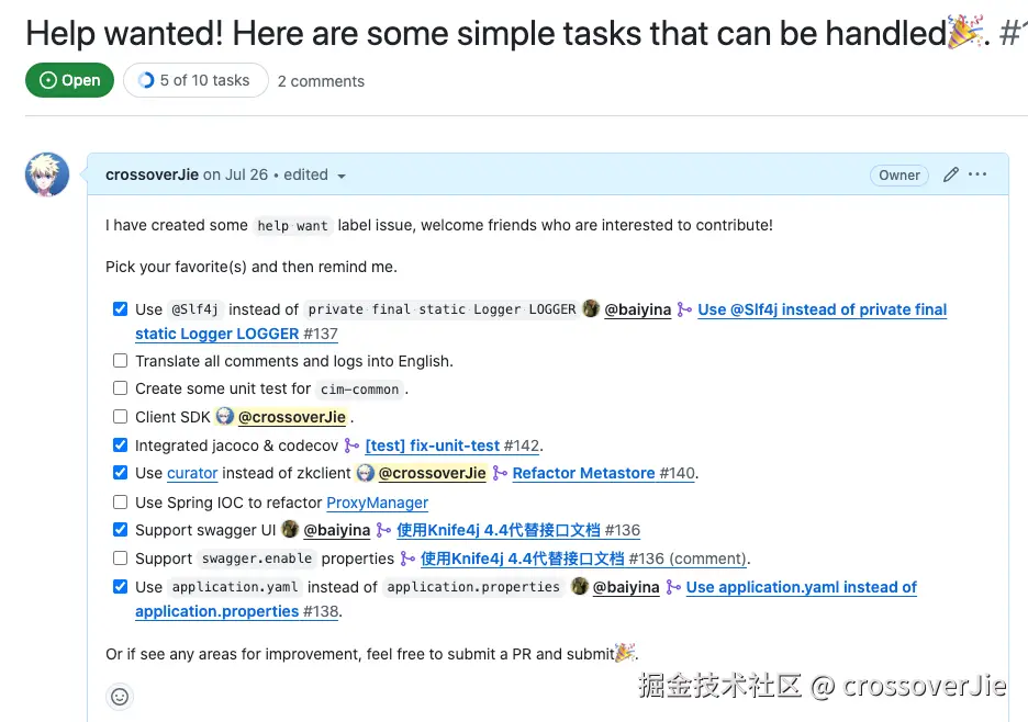 现在因为有了测试的 CI 也欢迎大家来做贡献,可以看看这里的 help want,有一些简单易上手可以先搞起来。