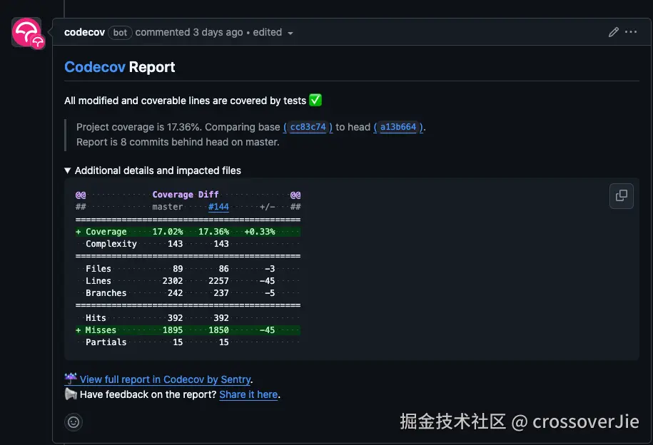 在 “Build with Maven” 阶段触发单元测试和集成测试,最终会把测试结果上传到 Codecov,然后会在 PR 的评论区输出测试报告。
