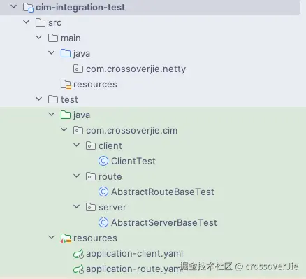 为了方便进行集成测试,我新增了 cim-integration-test 这个模块,这里面没有任何源码,只有测试相关的代码。