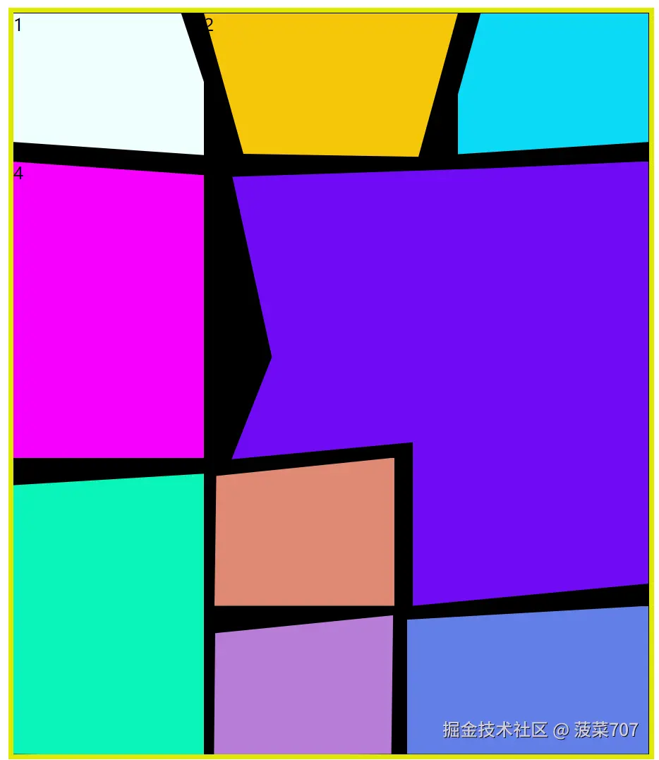 完成上面这种效果 首先需要clip-path 知识 本章知识将 带你复习 gird布局 和学习 clip-path 的基本使用