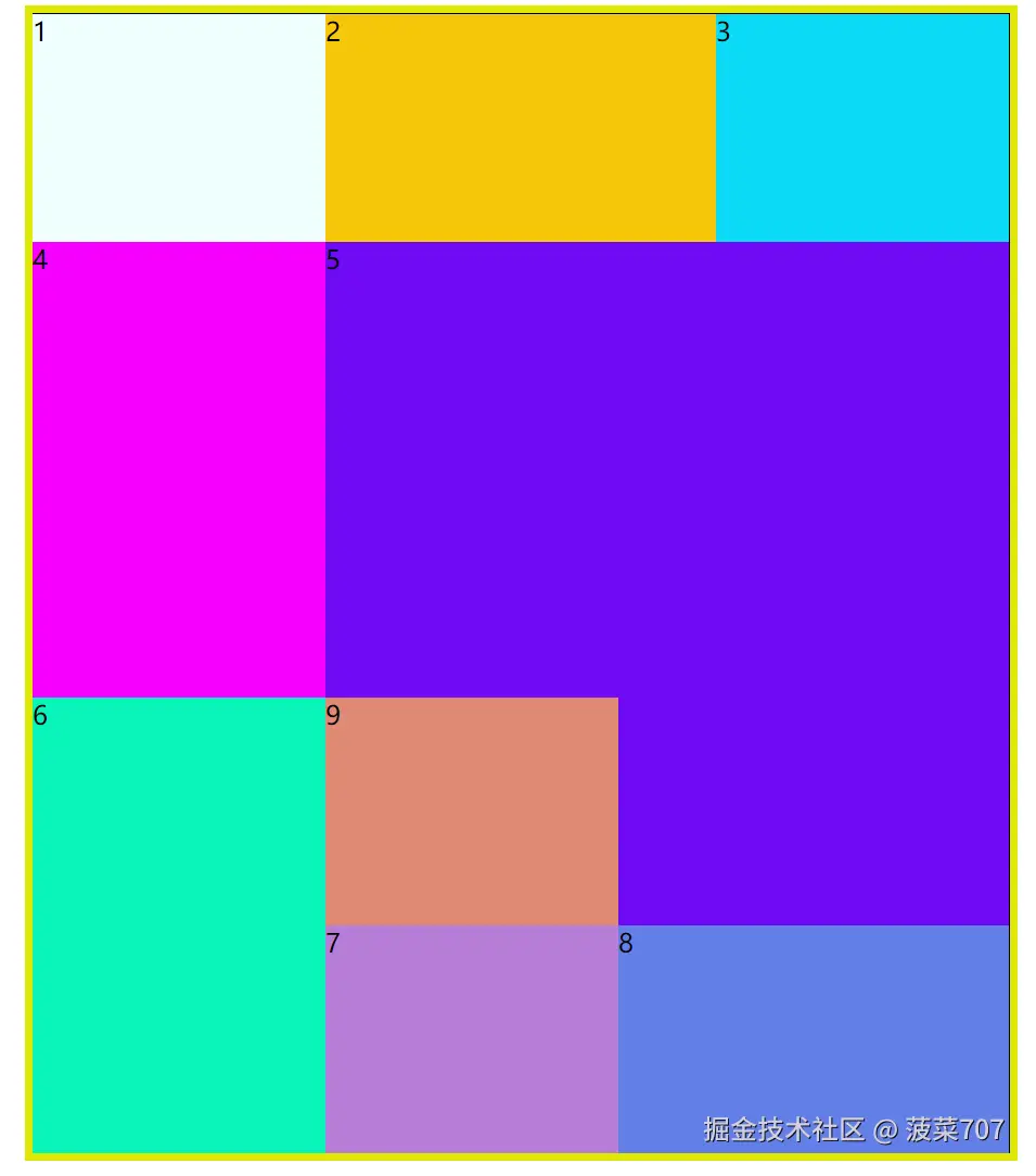 grid布局 它的局限就是只能布局成为一个矩形要完成其他形状只能这样