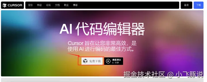 - 访问Cursor AI官网:打开你的浏览器,前往Cursor AI的官方网站。在首页,你会看到下载按钮,点击它以获取安装包。