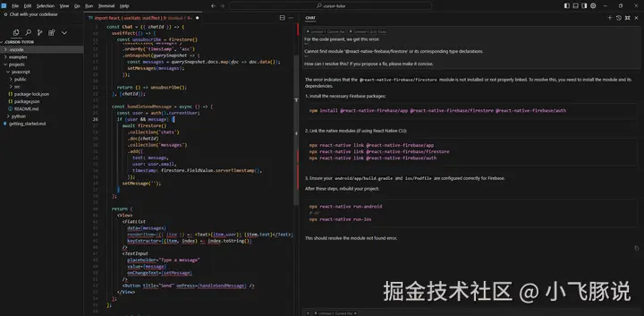 - 获取答案:Cursor AI会分析代码,并在对话框中提供详细的解释,帮助你理解代码的结构和功能。
