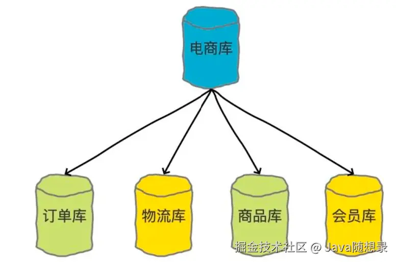 比较典型的分库场景就是在做微服务拆分的时候,会按照业务边界,把各个业务的数据从一个单一的数据库中拆分开,分别把订单、物流、商品、会员等单独放到对应的数据库中。