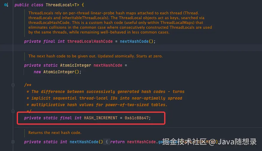 详细解释可参考:从ThreadLocal的实现看散列算法