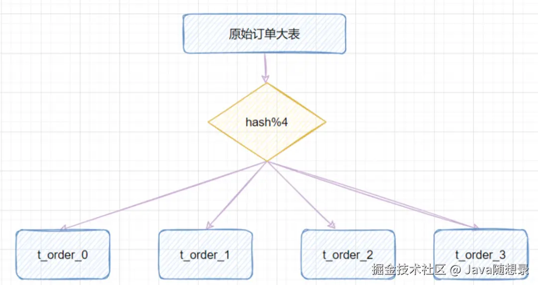 指定的路由key(一般是 user_id、order_id 等作为key)对分表总数进行取模,把数据分散到各个表中。