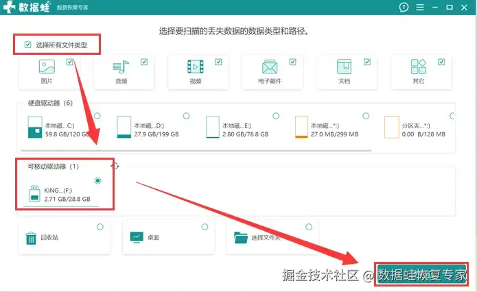 如果回收站中找不到数据,那么不要慌张,一切还有转机!从u盘删除的文件怎么找回?不妨试试数据 蛙恢复专家,它或许能有效地恢复各种类型的文件,包括文档、图片、视频、音频等。除了U盘,它还支持硬盘、SD卡、CF卡等各种存储设备的数据恢复。下面就一起来学习如何使用吧!