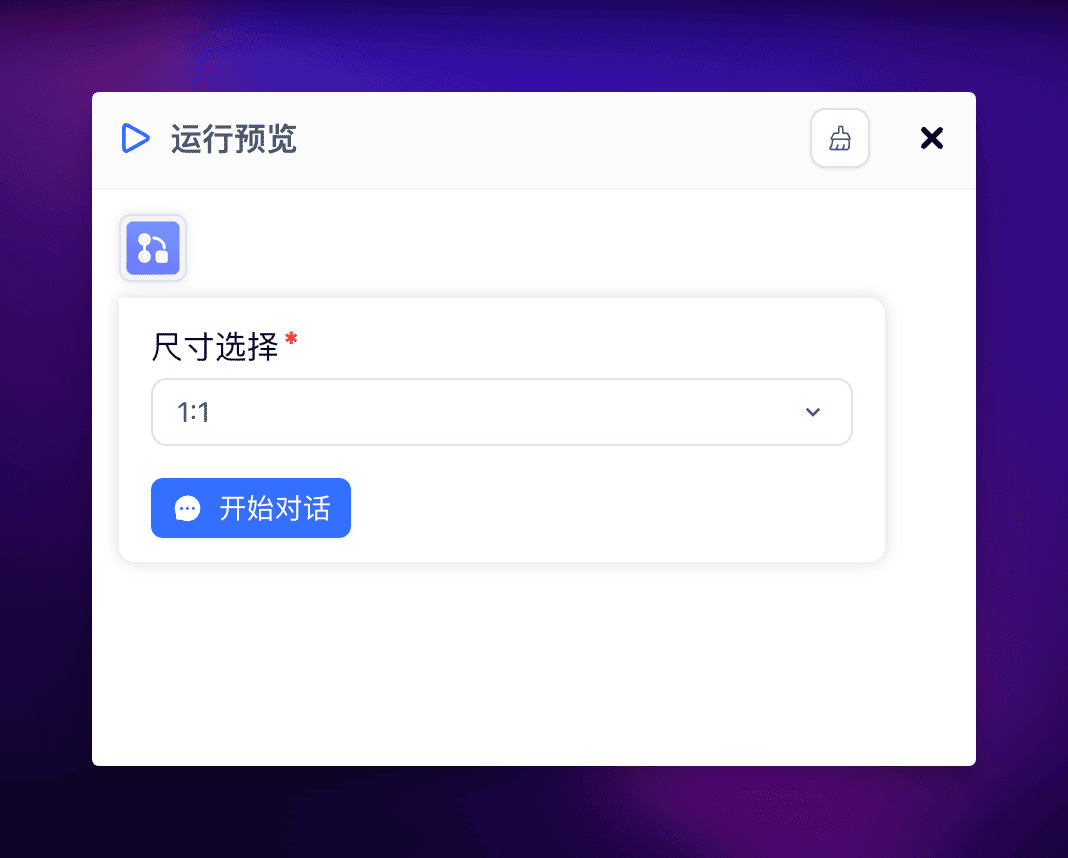 点击右上角的「运行」进行调试,选择好尺寸,点击「开始对话」: