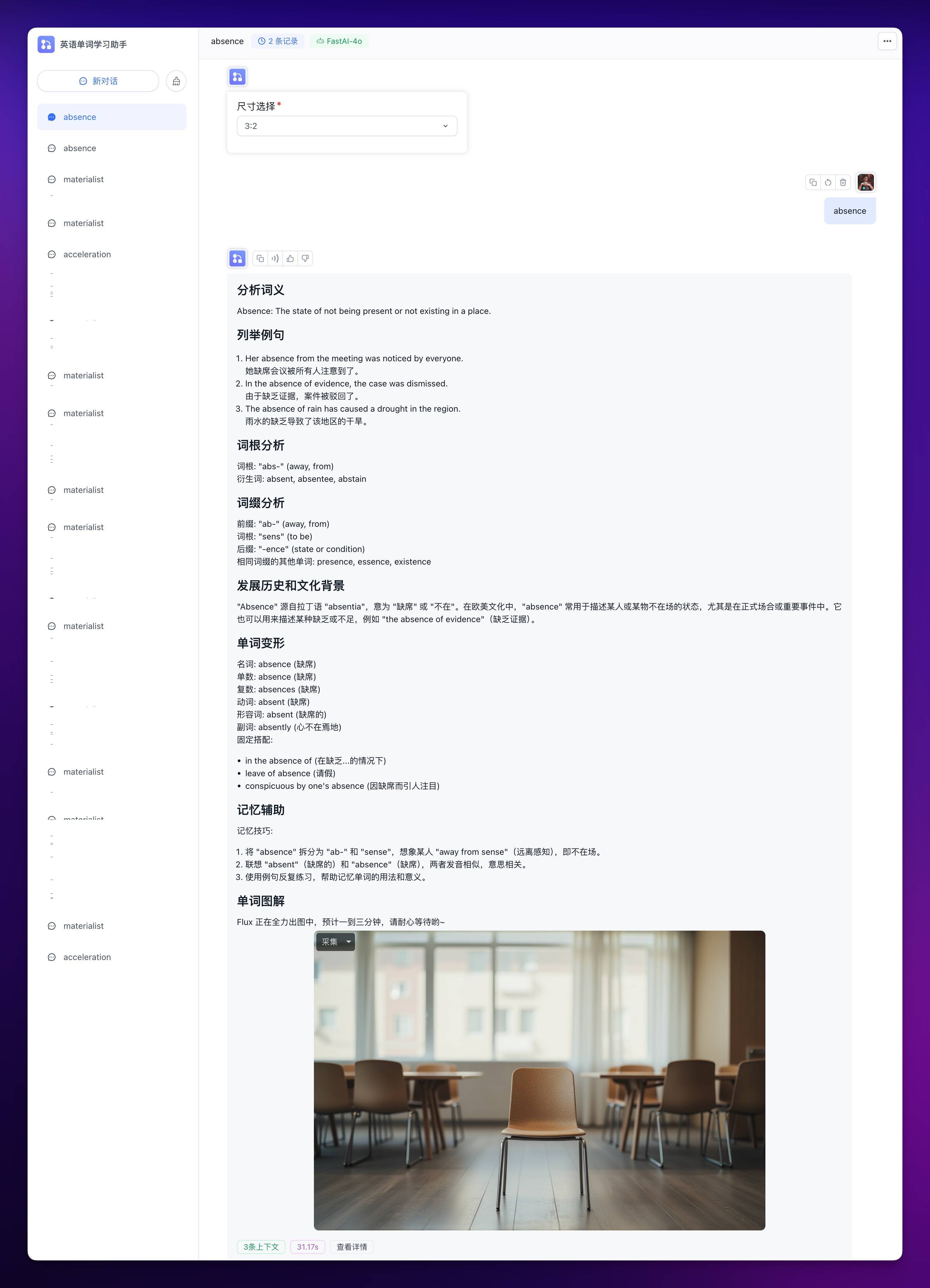 下面我们来看一个更强大的工作流:英语单词学习助手。