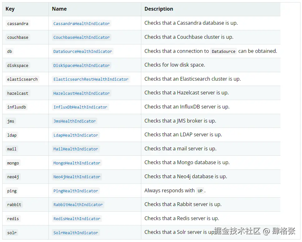 例如 /health 端点提供了关于应用健康情况的一些基础信息。/metrics 端点提供了一些有用的应用程序指标(JVM 内存使用、系统 CPU 使用等)。
