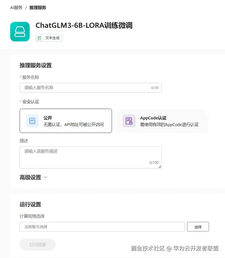 在部署推理服务页面完成参数配置。