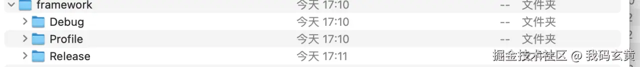 打包完成后,你会得到三个文件夹,分别对应不同的构建环境(Debug、Profile、Release)。