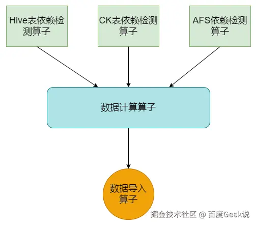 依赖检测算子:对任务所依赖的上游数据源(如hive表、ck表、AFS文件、任务等)进行依赖检测。