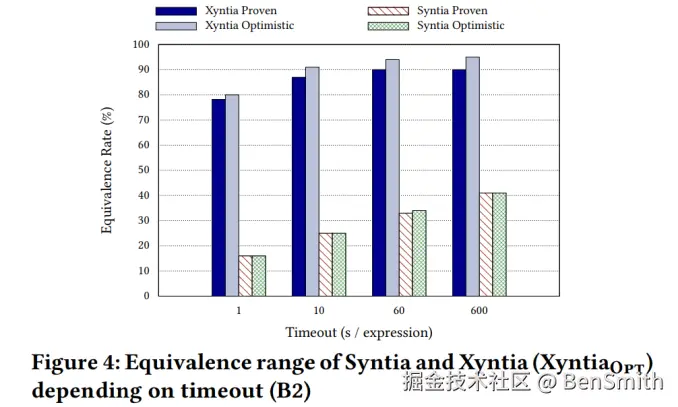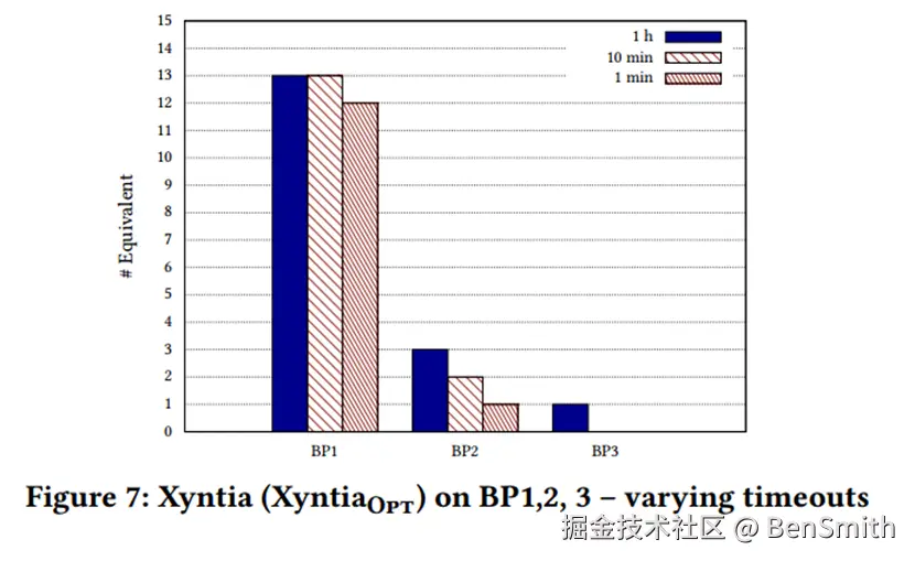 - 由图中可以看出,Xyntia是简单正确的,更需要强调的是,Xyntia在B2上仍有较好的成功率(80%以上),并且受超时时间影响小,说明Xyntia是健壮且快速的。