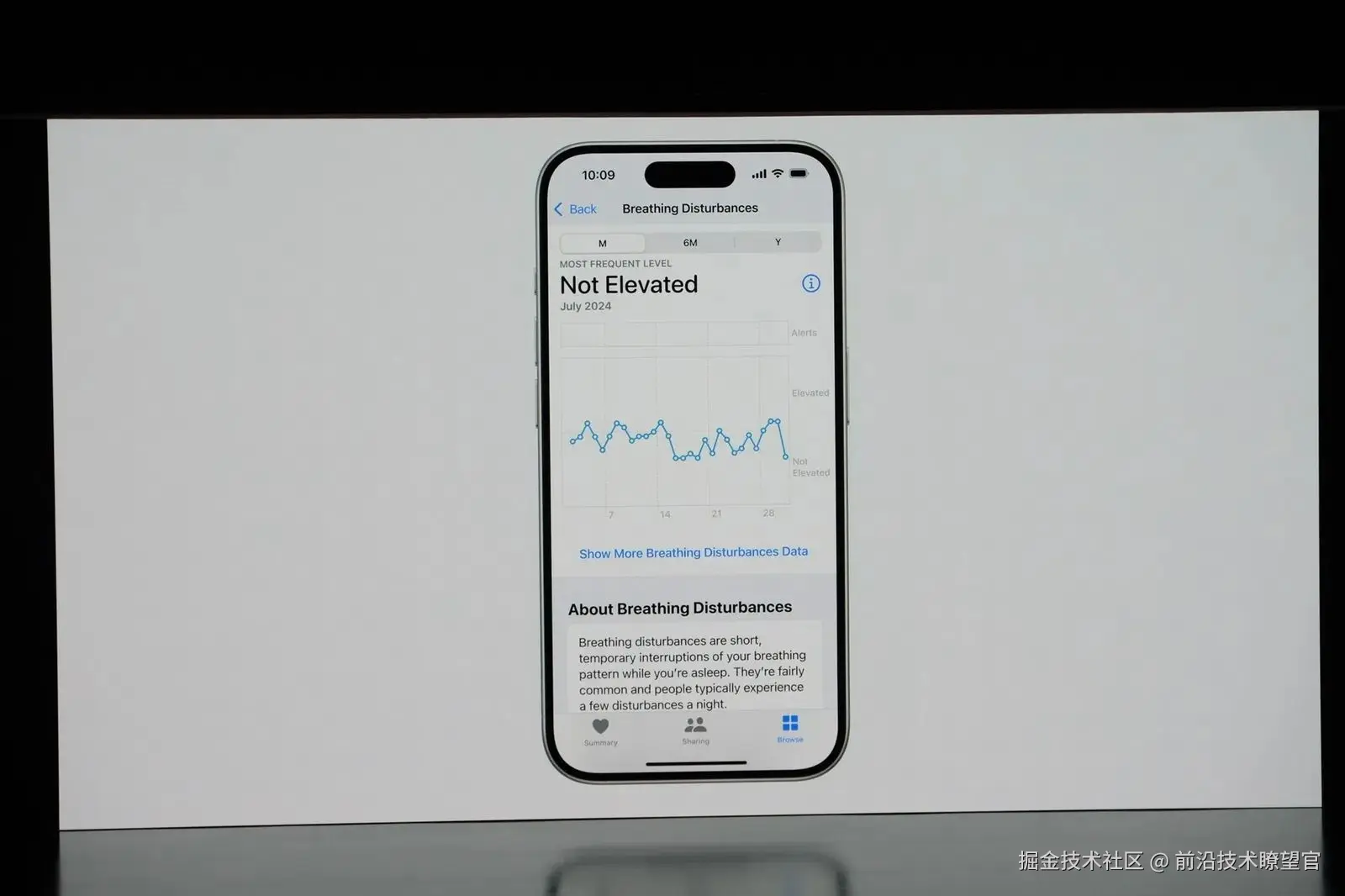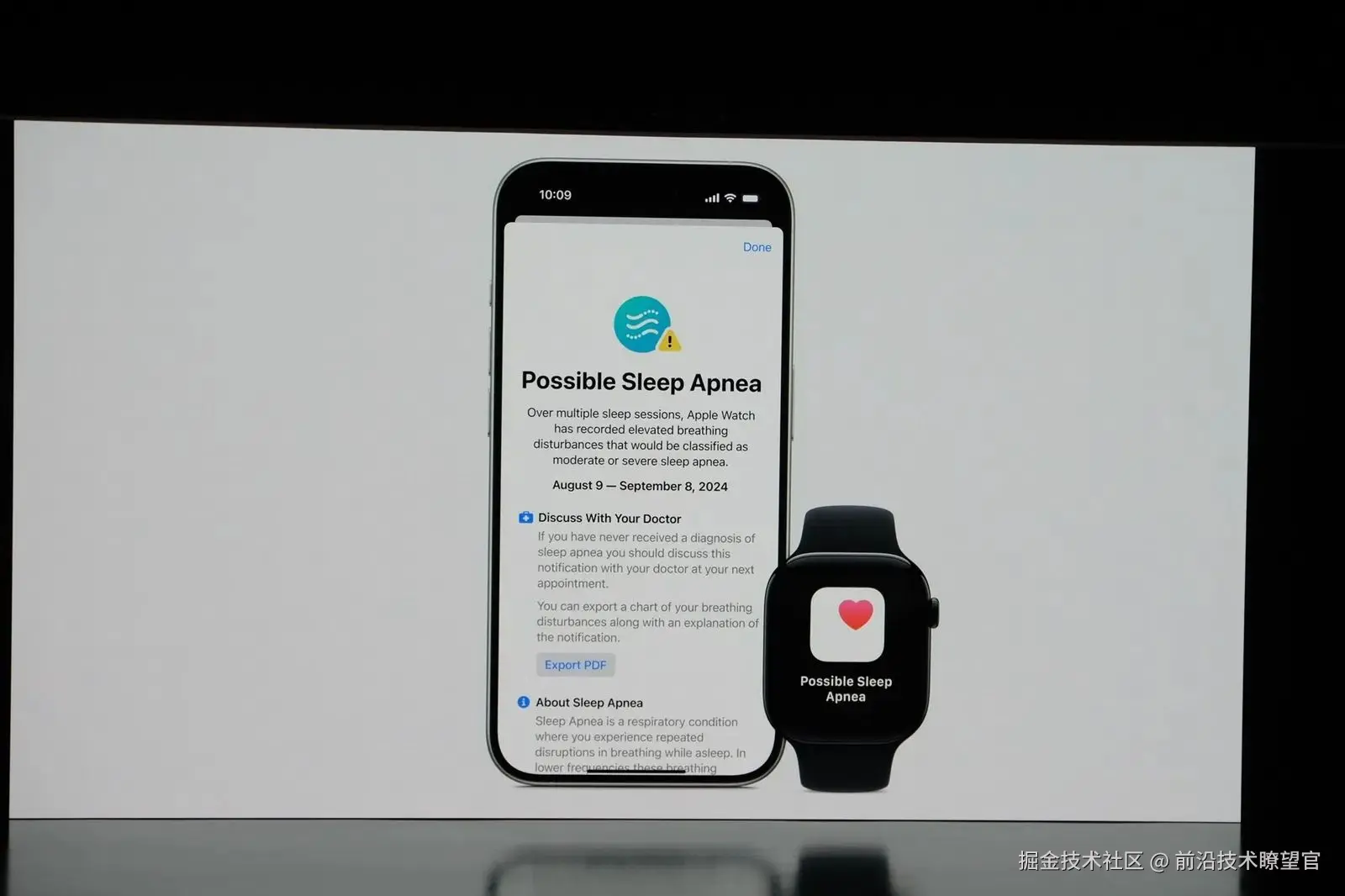 苹果表示据称,80% 的睡眠呼吸暂停患者未被诊断(未提供来源),Series 10 能检测睡眠呼吸暂停。