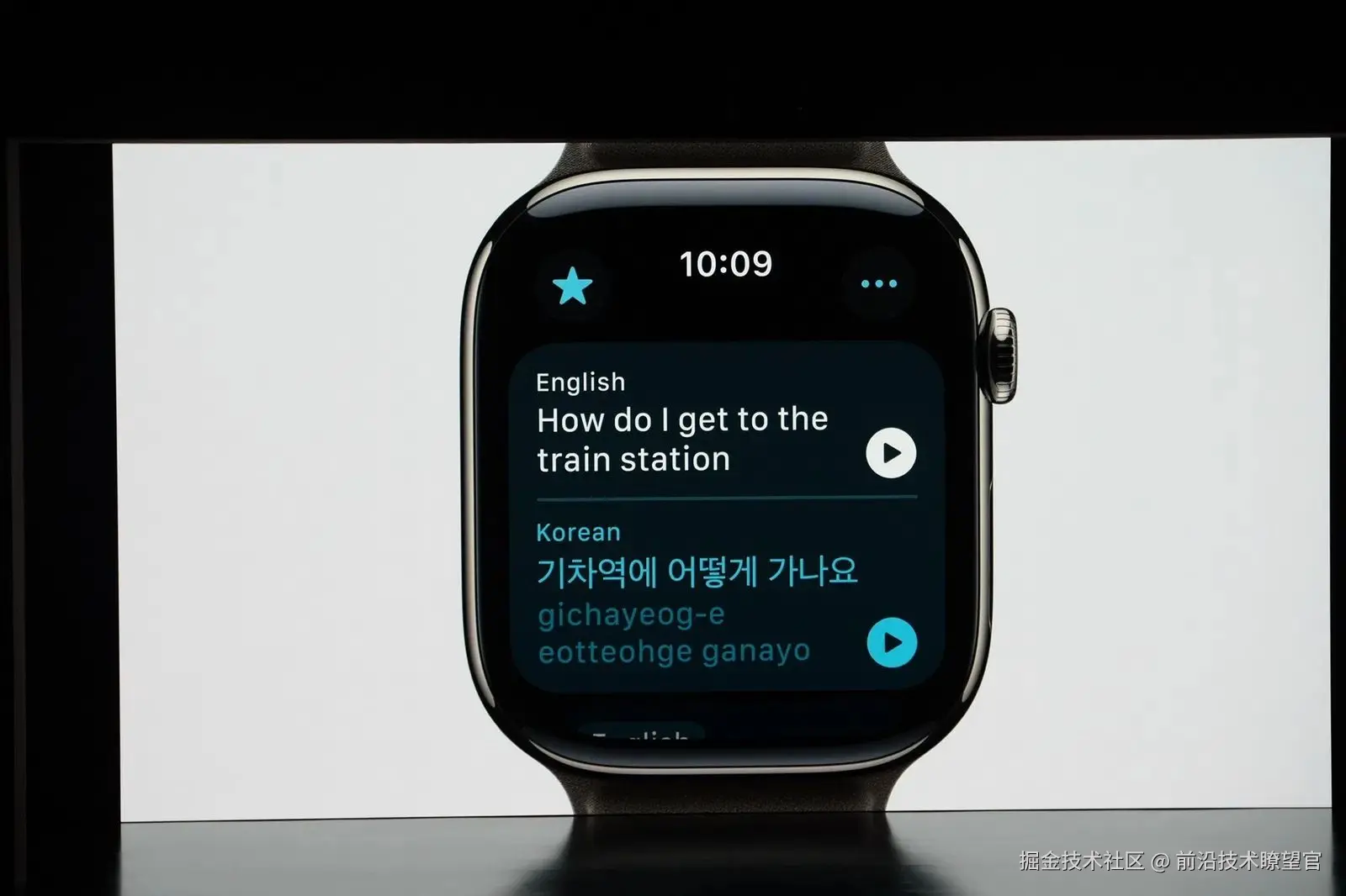 在 watchOS 10 上,智能叠放(Smart Stacks)功能更智能,照片应用更出色,还有翻译应用。