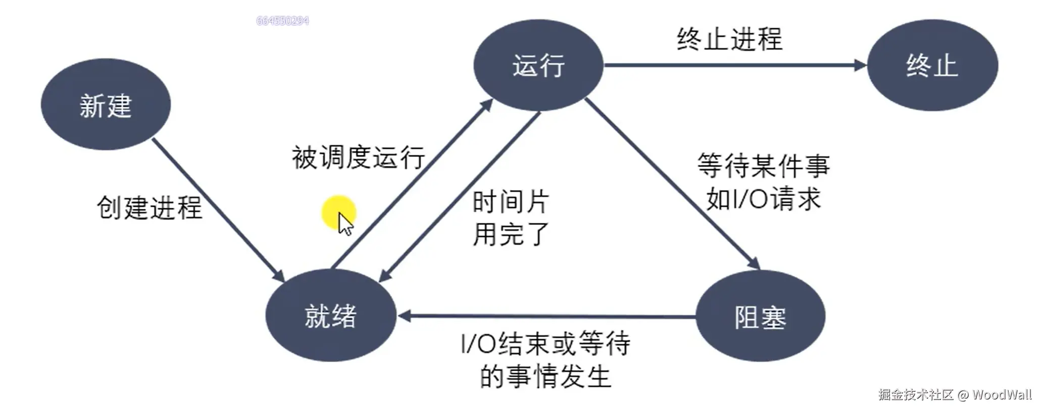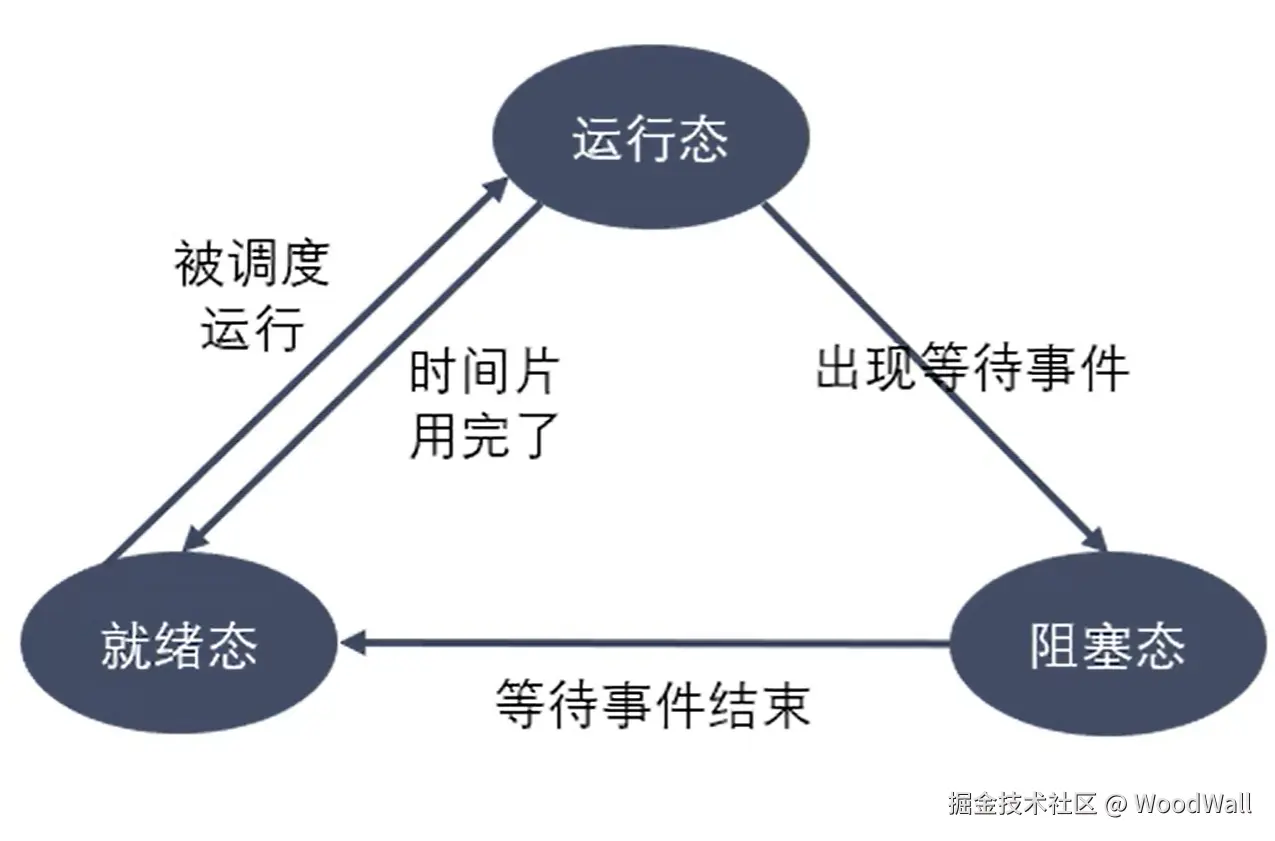 等待(wait)或者睡眠(sleep)状态,指进程不具备运行条件,正在等待某个事件的完成