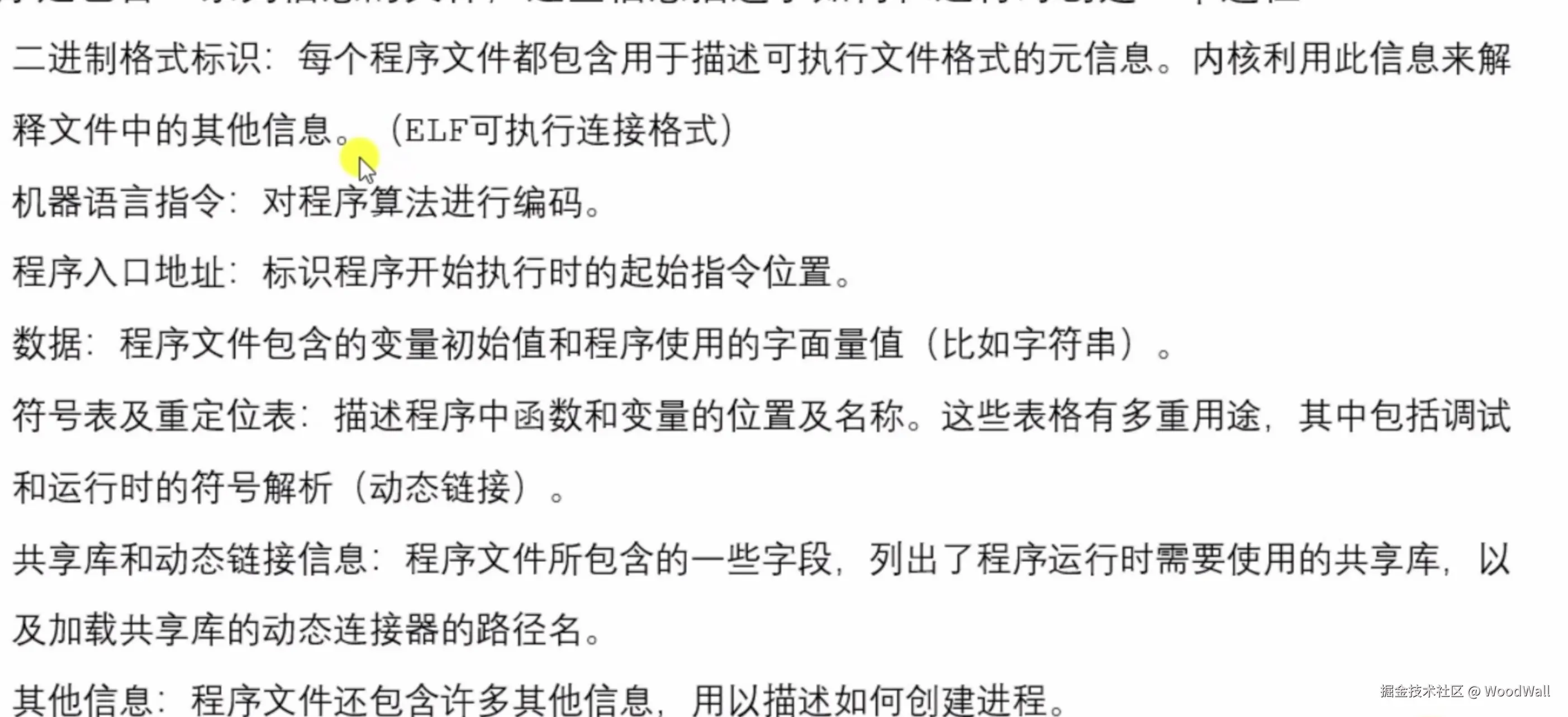 程序整个文件里面存储了 机器指令、程序入口地址、数据等创建进程必须的内容。