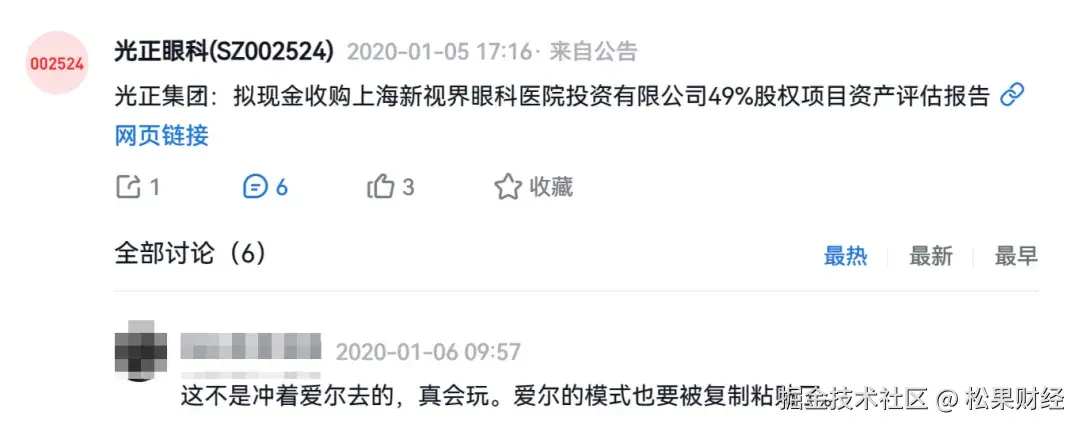 首先可以确认的是,光正眼科确实非常坚定地在走和爱尔眼科一样的并购之路。就在今年4月底举行年报业绩说明会时,投资者问到公司今年是否还有并购和新开医院的计划,董秘直接回复,内生式增长和外延式扩张两种方法都要用,而且会适时推动参股医院注入上市公司体内。