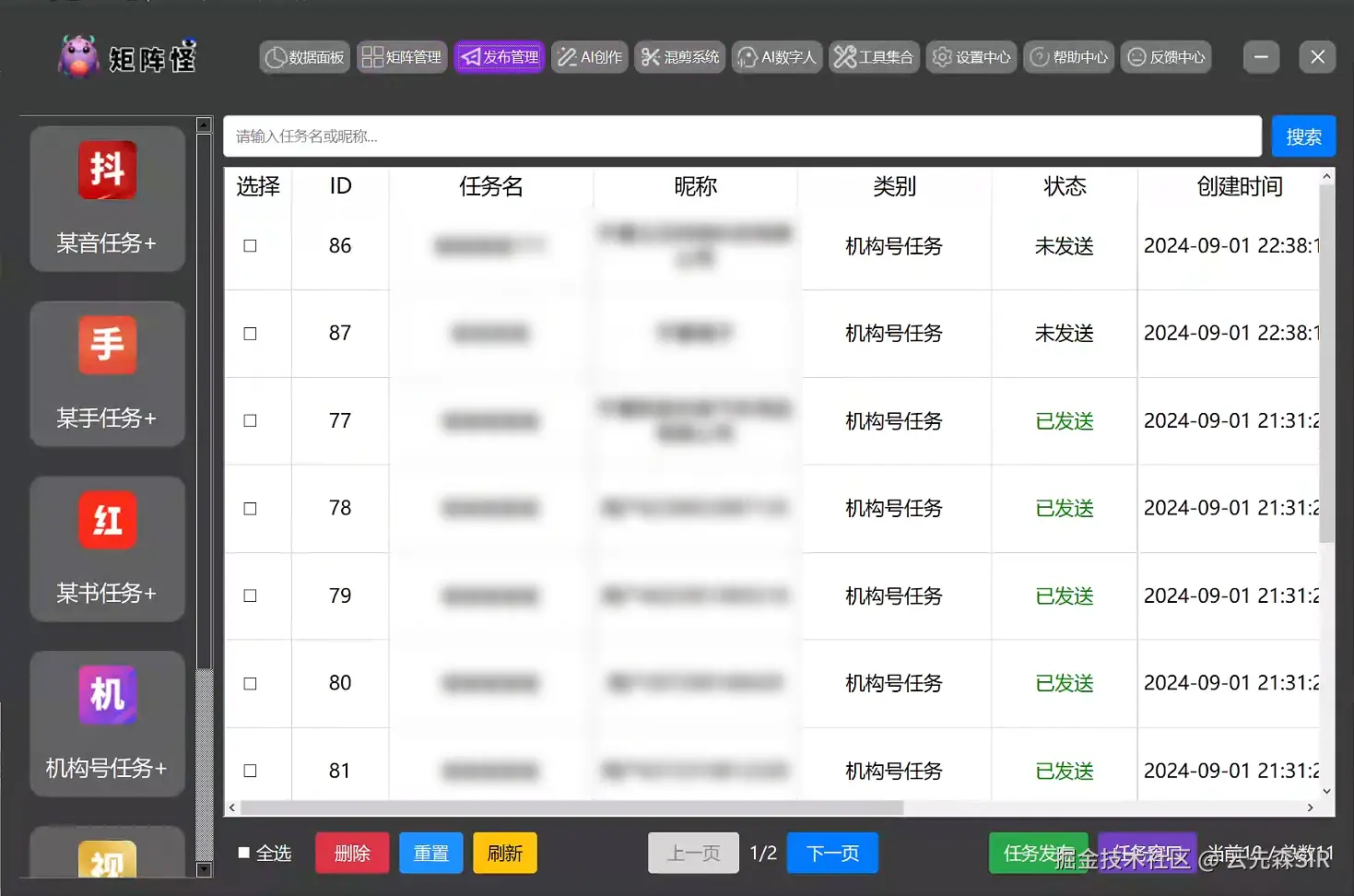 - 全域平台支持:本方案支持多种短视频平台的矩阵式管理,包括但不限于小红书、抖音、视频号、快手、B站等,还可以根据客户需求定制其他平台的接入。这种全面覆盖的能力使得用户可以一站式管理所有平台的内容分发,显著提高效率。