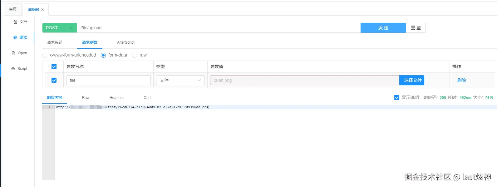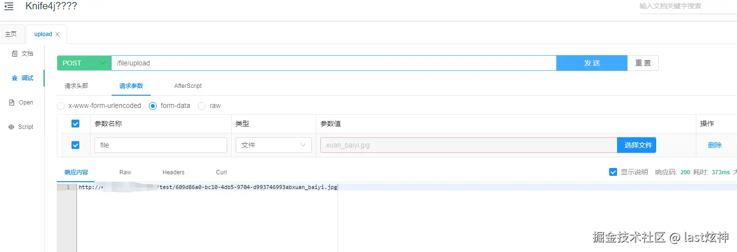 - 启动SpringBoot项目,测试接口,可以看到后端正确返回了地址,MinIO中也有对应的文件