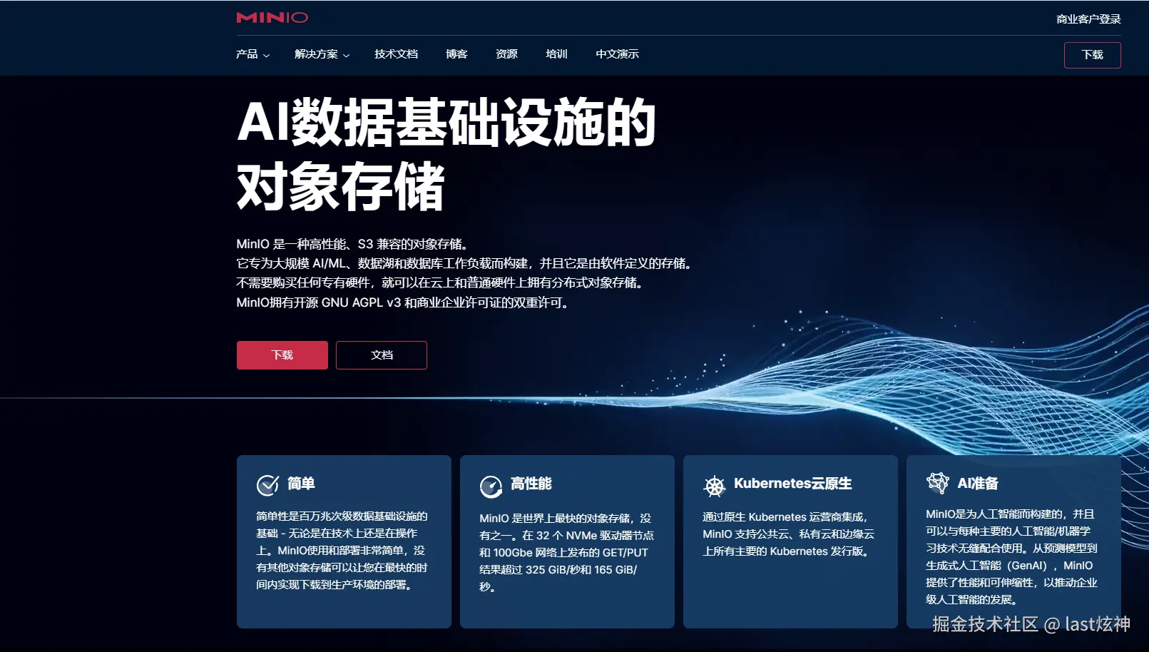 `MinIO`是一个开源高性能的对象存储服务器,它具有分布式、高可用、水平扩展的特点;非常适合用于大规模对象存储和数据分析,优点包括**低延迟、易部署和管理、高吞吐等**安装部署