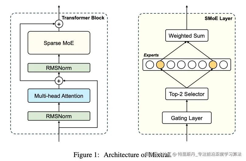 - Mixtral 用了 8个7B的experts,总参数量不是56B,而是46.7B,因为只有FFN层被设计为experts,其他层都是共享的