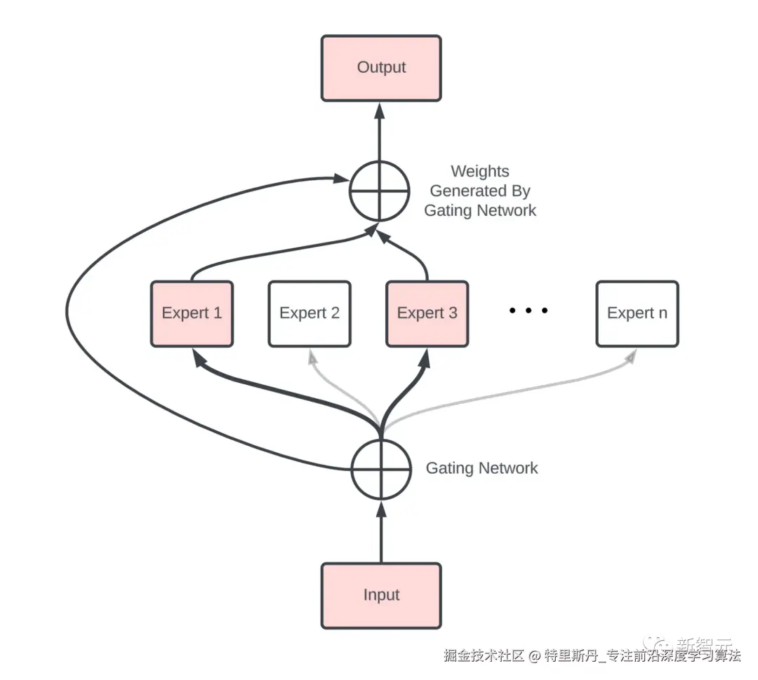 这里的重点是在门控功能中使用稀疏性,——这意味着对于每个输入实例,门控网络只选择少数专家进行处理,其余的专家保持非活动状态。