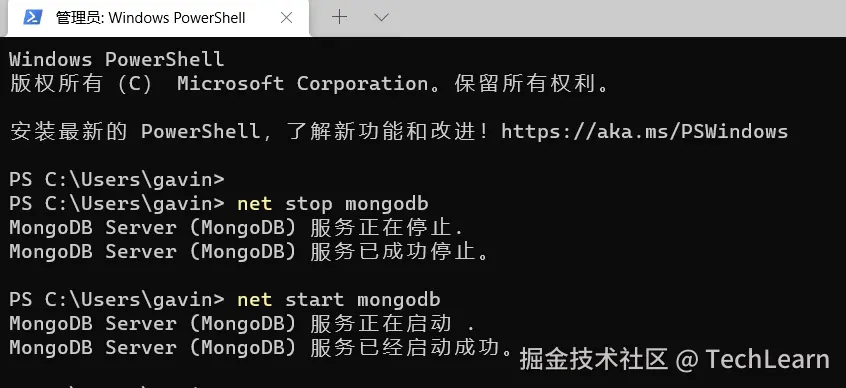 #如果需要移除MongoDB服务,只需使用管理员权限运行cmd工具,并输入如下命令。