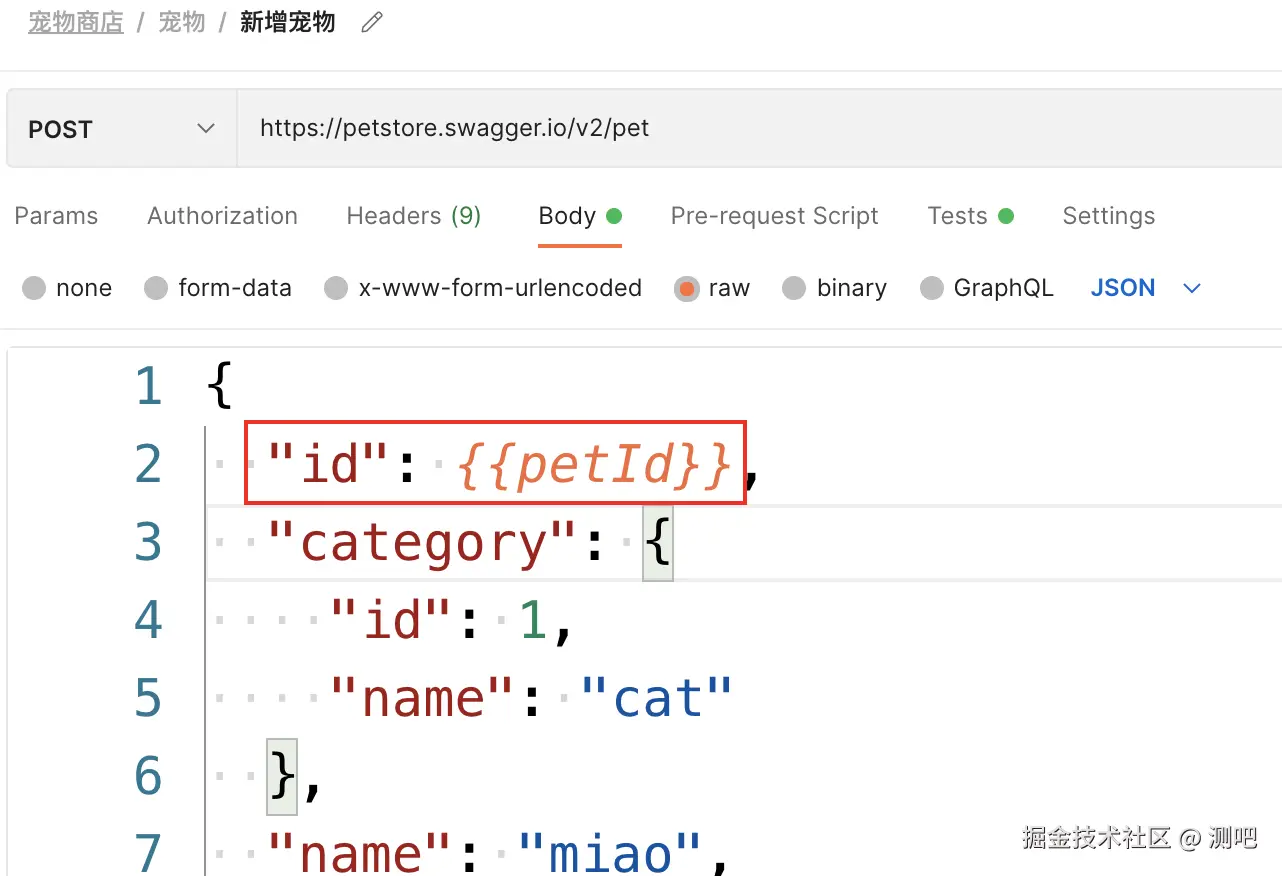 设置好之后,新增宠物、更新宠物和删除宠物接口中的宠物 id 就都可以引用这个测试集变量。