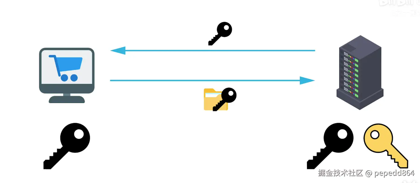 - 之后客户端和服务器之间就可以使用这个对称加密密钥进行数据的加密和解密传输。对称加密算法(如 AES)在数据传输过程中提供了高效的加密和解密速度,确保了数据传输的效率。