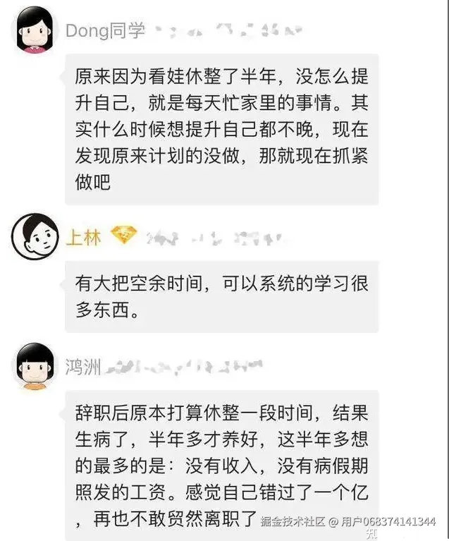 (2)不要给自己设置舒适区,这个就是说,一个公司待久了不要懒惰,不能荒废自己,始终要保持清醒的头脑和进取心,不断学习,不断完善自己的技术,架构设计能力,项目管理能力,交付能力等。