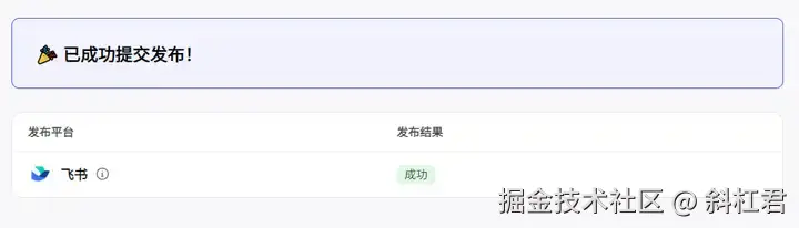 说明触发器设置成功了,接下来我们把Bot发布到飞书。