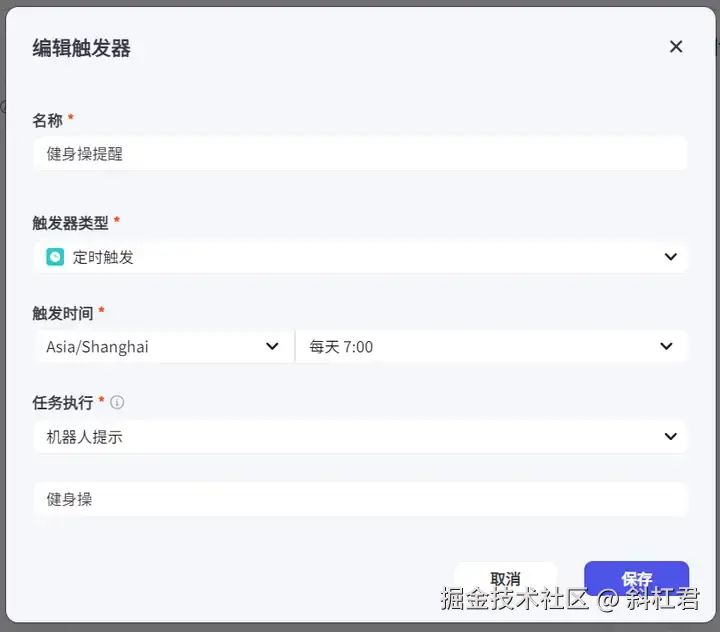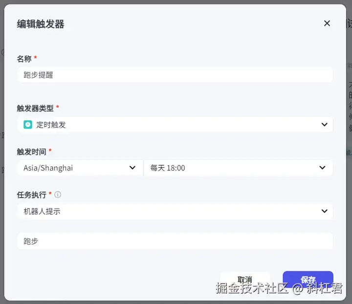 Coze平台的触发器功能允许你的Bot在特定时间或事件下自动执行任务。这对于创建自动化和响应式应用非常有用。