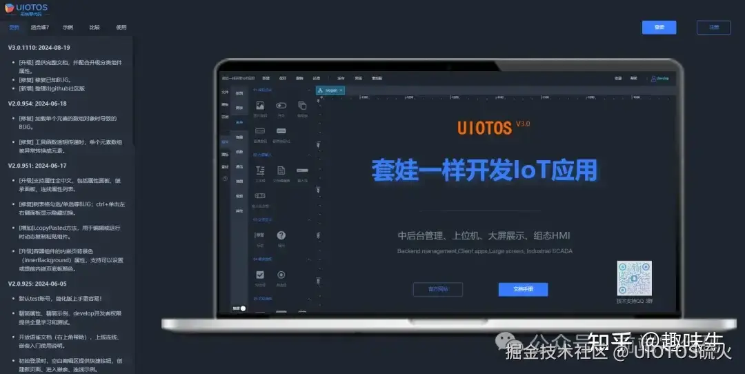 社区版已开源,商业版带完整功能、授权示例和素材,可开箱即用!尽管已经到3.0版,作为一站式前端工具 ,UIOTOS零代码还有很多路要走。对于界面开发者而言,组态一样就能搭建上位机、客户端,将带来惊喜!