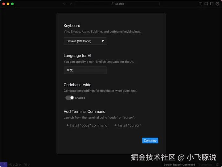 下载并安装 首先,前往 Cursor 的官方网站 Cursor 官网 下载安装包。它支持 Windows、macOS 和 Linux,几乎覆盖了所有主流操作系统。安装非常简单,不需要你有任何复杂的设置。