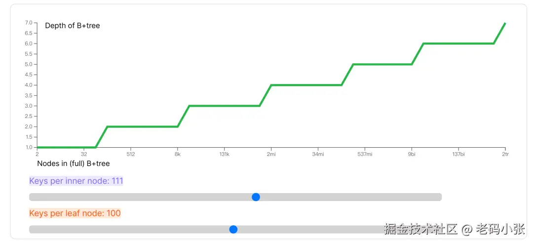 这里有个数据可以说明B树的厉害:假设你有100万条数据,用B树做索引的话,你最多只需要查询4次,就能找到目标数据!这是因为B树的结构使得它的每层节点都可以管理大量数据,而每次只需查看少数几个节点,减少了磁盘I/O的次数。而对于现代数据库来说,I/O操作可是性能的头号杀手。
