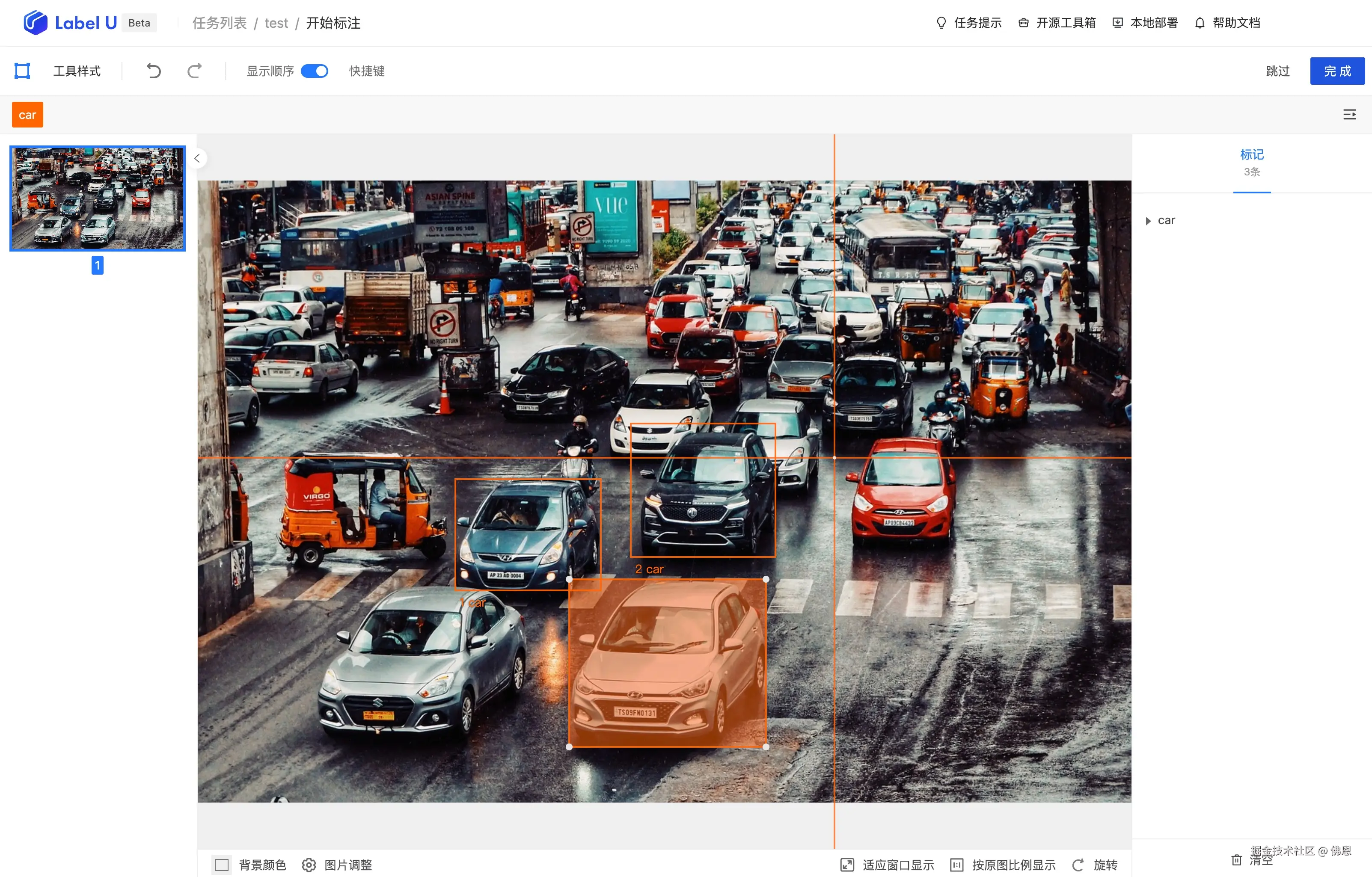 LabelU 是一款综合性轻量级的标注工具,由 OpenDataLab 开发今年上半年推出。LabelU的优势是工具类型全面,甚至包括属性、立体框等工具,适合构建复杂的标注任务,建自己需求的标注界面。LabelU 目前没有集成智能标注的功能,但支持预标注数据的一键载入,用户可以根据实际需要对其进行细化和调整。