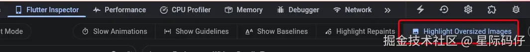 在 Flutter inspector 工具里有一个「高亮尺寸过大的图片」的选项,启用该选项之后,Flutter会将尺寸过大的图片进行「垂直翻转」与「色调反转」: