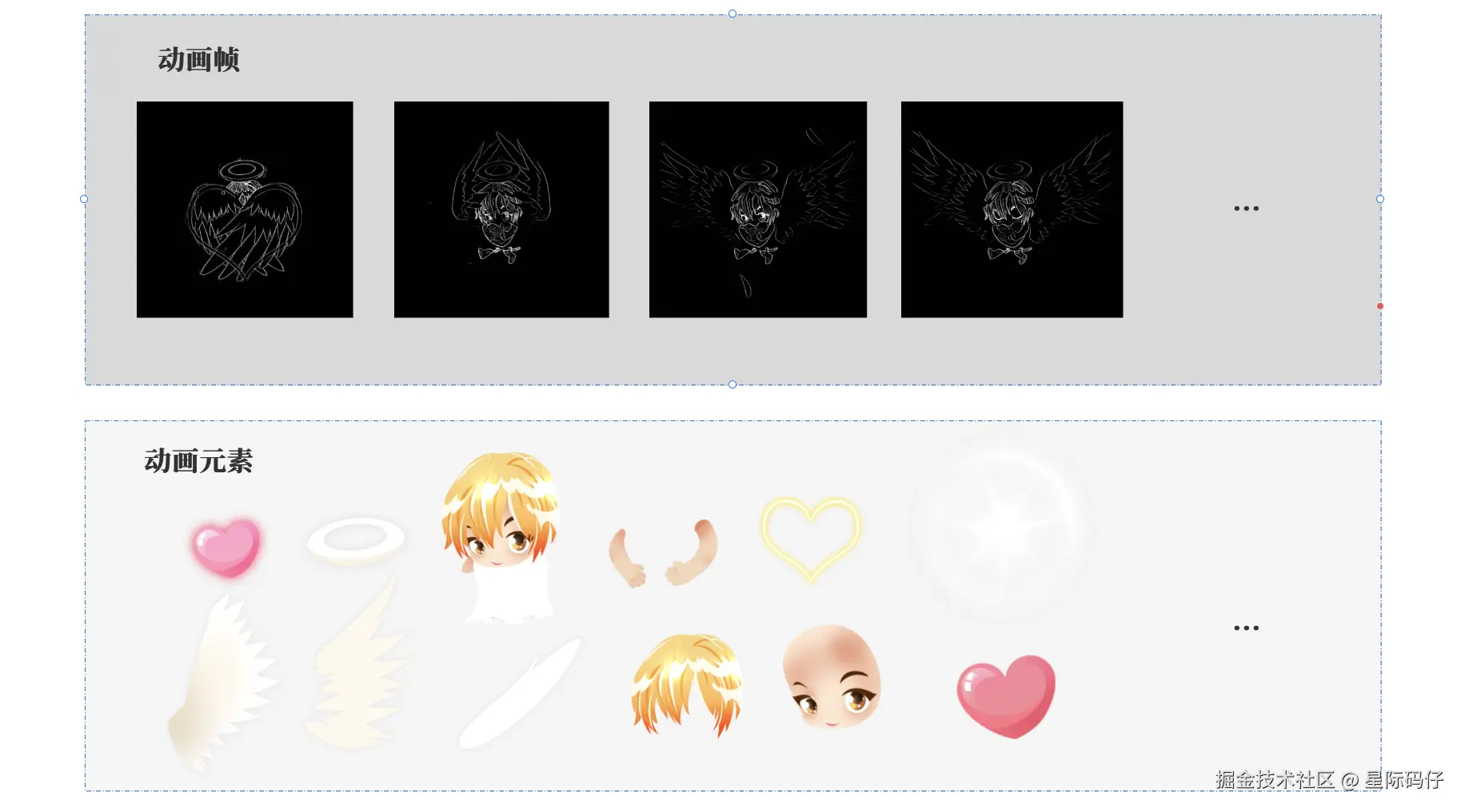 - 动画元素:指的是动画过程中运用到的各种切图素材(包含位图、矢量图等)。