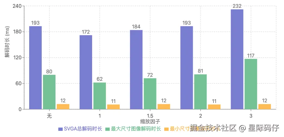 - 评估测试维度:SVGA 总解码时长 & 解码不同尺寸图像的表现差异;