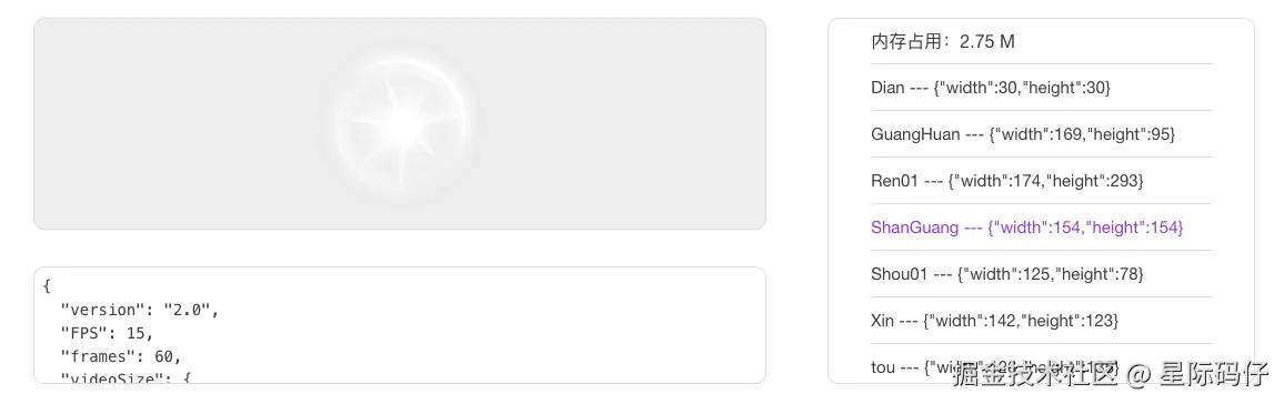 按照这个计算方法得出的 SVGA 总内存占用,与其在 SVGA 官网预览时所得到的内存占用数值是一致的: