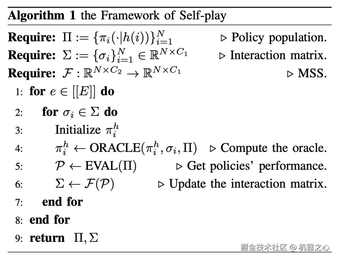 ● 算法 1 伪代码第 1 行: 表示整个策略集合的总训练轮数,也即策略池中每个策略的更新次数。