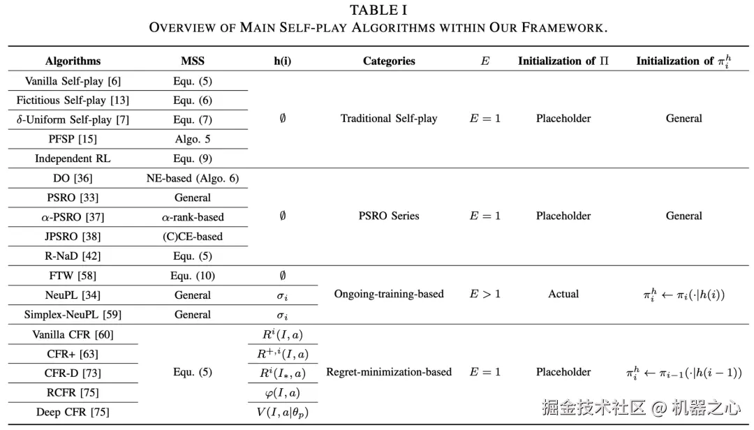 我们定义了一个统一的自博弈框架,并将自博弈算法分为四大类:传统自博弈算法、PSRO 系列算法、基于持续训练的系列算法和后悔最小化系列算法。