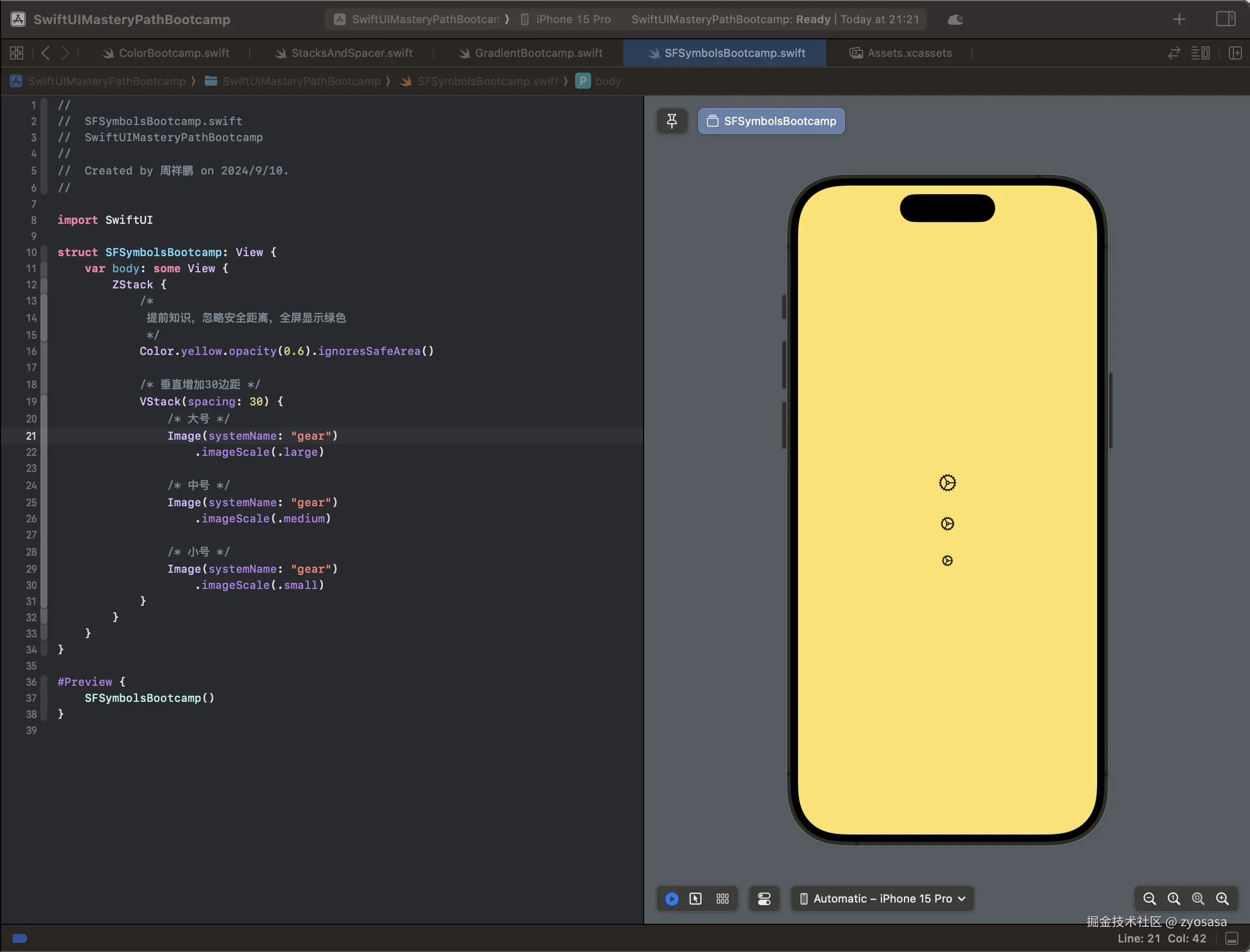 本章节我们学习如何使用Apple平台不同大小、比例和多色的系统图标。