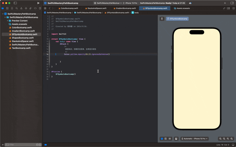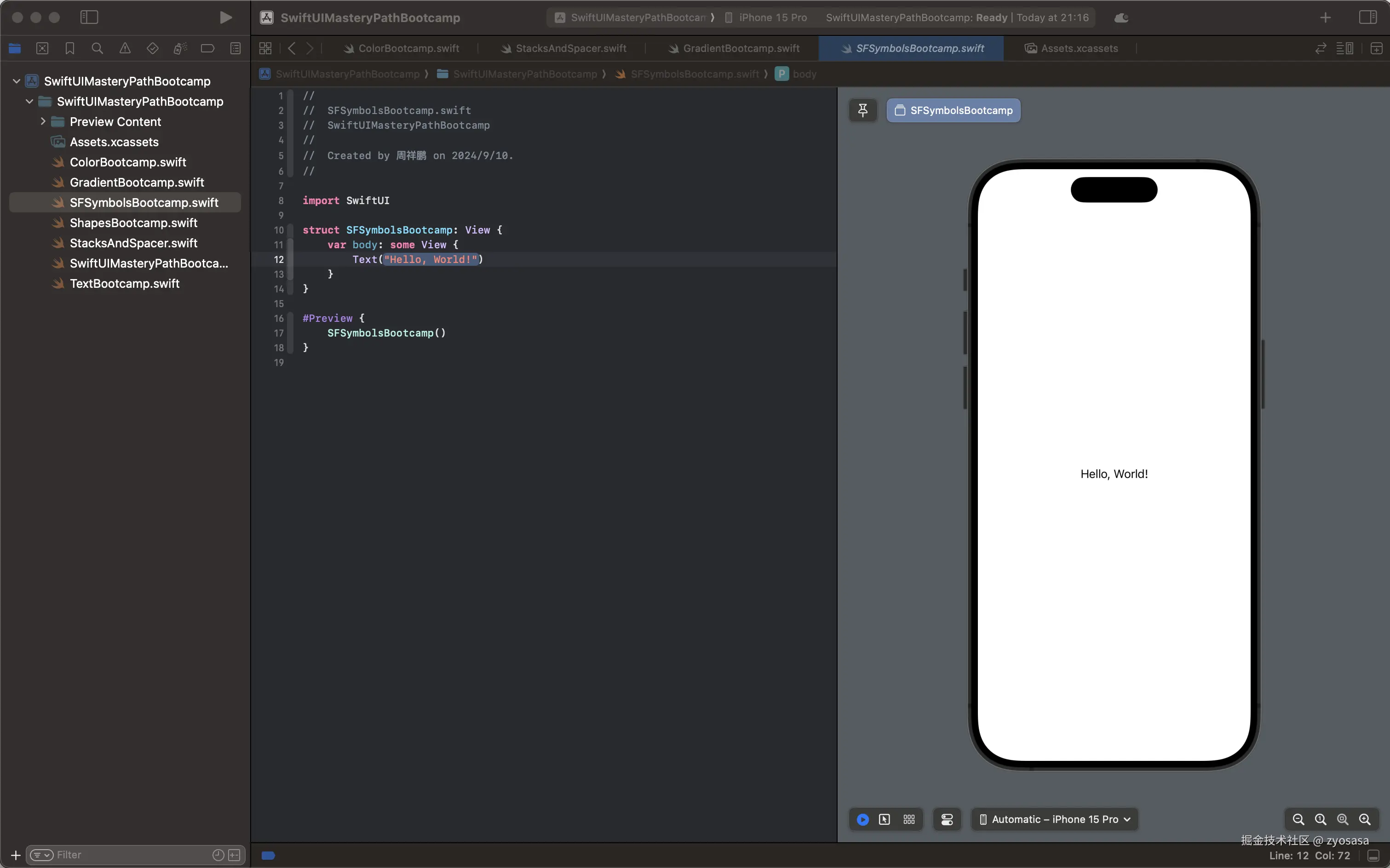 快捷键 Command + N,我们新建文件名为 SFSymbolsBootcamp.swift
