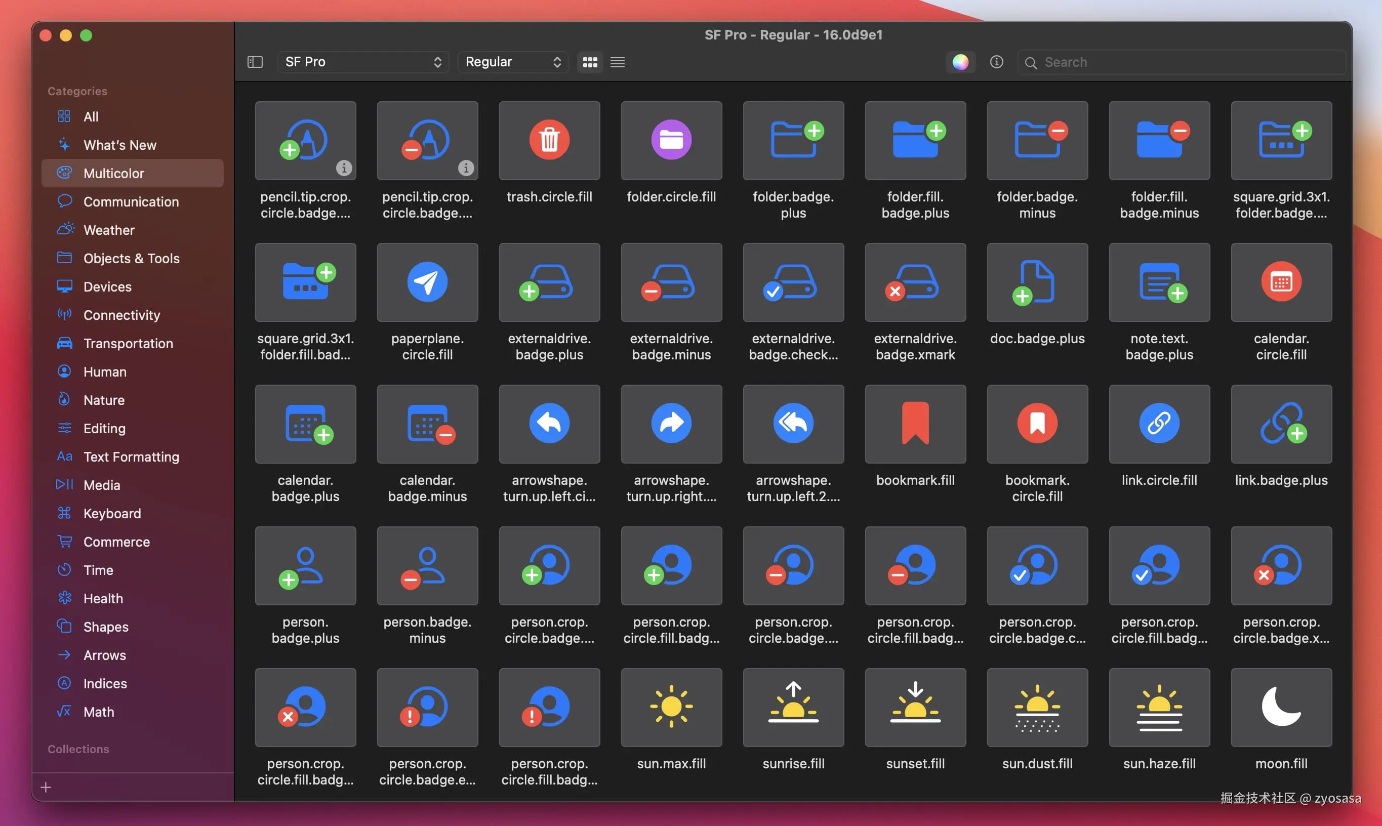 Apple 提供了一组超过 2,400 个可配置符号,您可以在应用程序中使用它们。它们与 macOS、iOS、iPadOS、watchOS 和 tvOS 的系统字体 San Francisco 无缝协作。