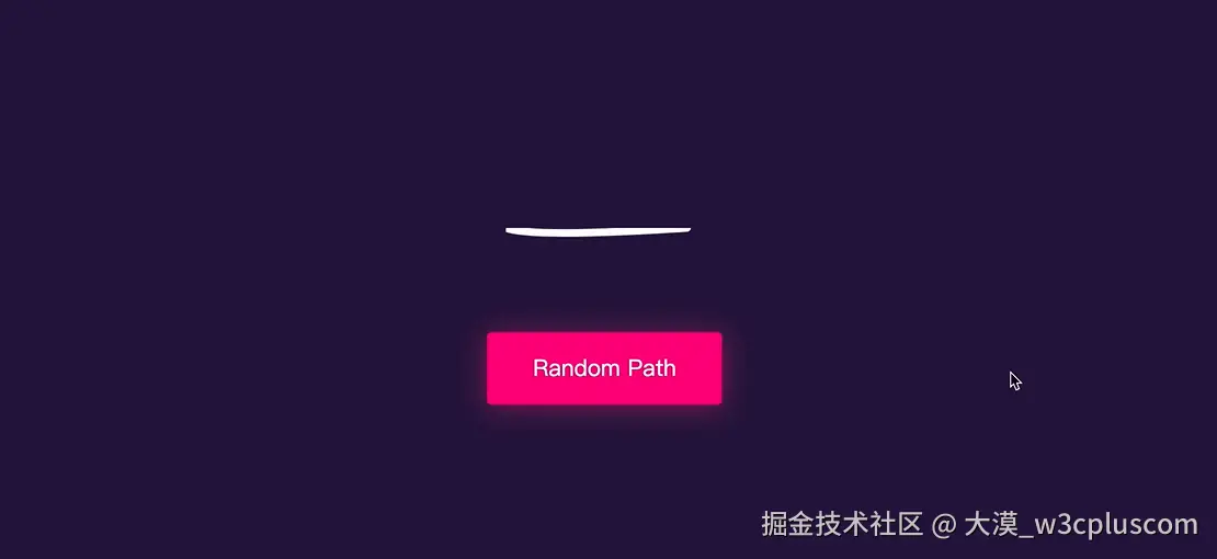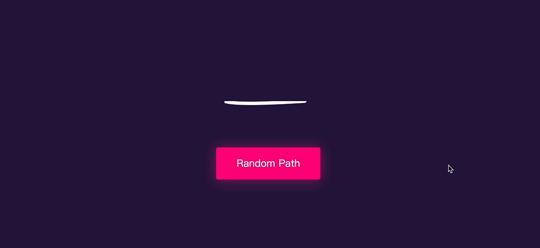 刚才提到过,只需要几行JavaScript脚本就可以改变SVG的<path>的d值,即改变路径。其实,我们还可以使用JavaScript让路径变成一个随机的路径,即<path>的d的值是随机的,示例所需的脚本如下: