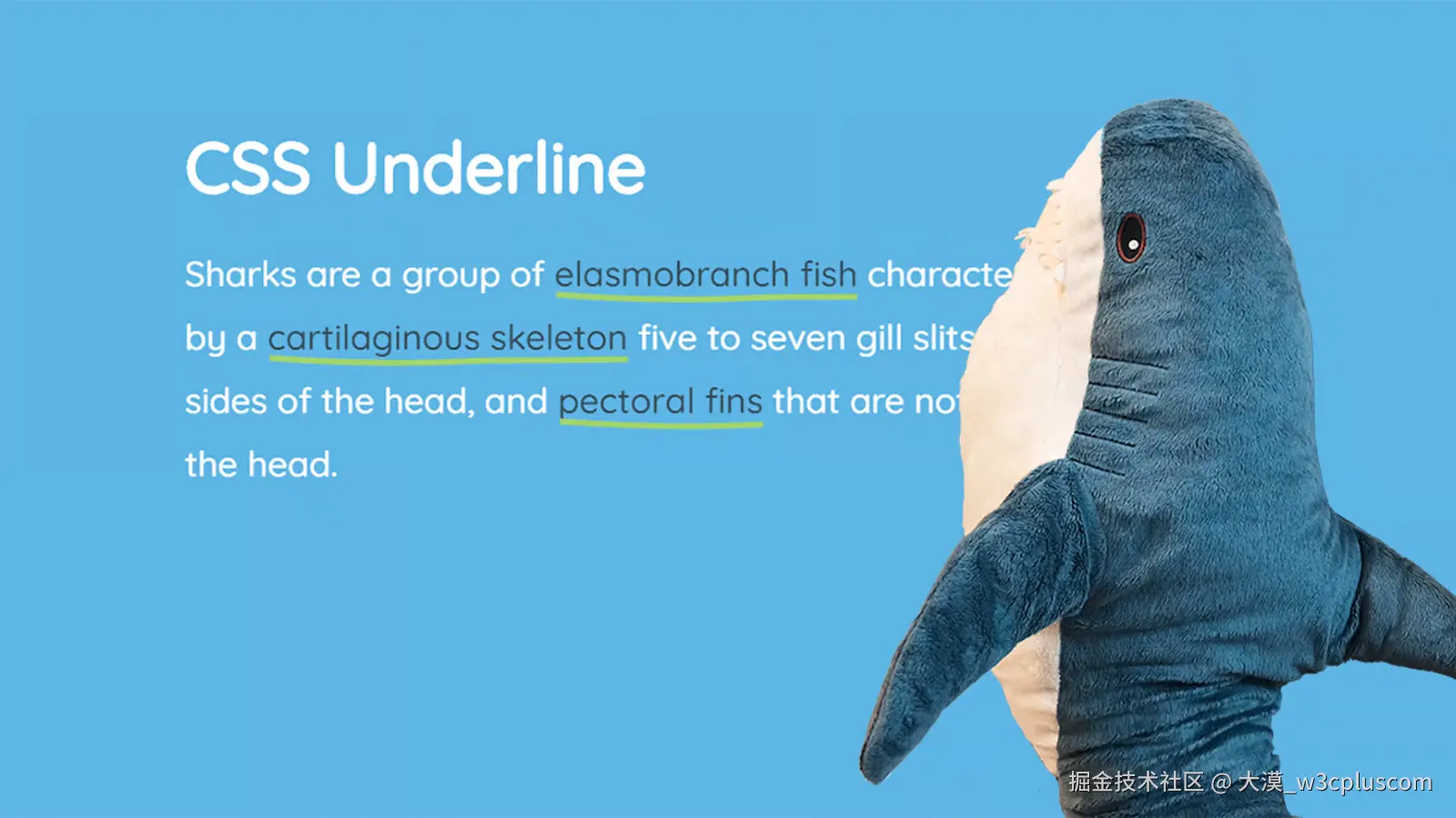 在Web中给文本添加下划线常常出现在<a>链接的文本上,早期一般使用text-decoration属性给文本添加下划线、删除线等。除了text-decoration之外,CSS还有很多技术方案可以给文本添加下划线效果,比如border-bottom、box-shadow、background-image等。对于Web开发者而言,CSS还有更多的,更灵活的特性实现文本下划线的效果。在这篇文章中,将和大家一起聊聊CSS中其他的特性怎么实现一个更有创意的效果。